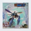 Buzz / Oil paint, spray paint, chalk pastel, charcoal, found objects, and printed image on canvas / 12 × 12 in