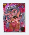 Pollen / Oil paint, spray paint, chalk pastel, charcoal, found objects, and printed image on canvas / 12 × 9 in